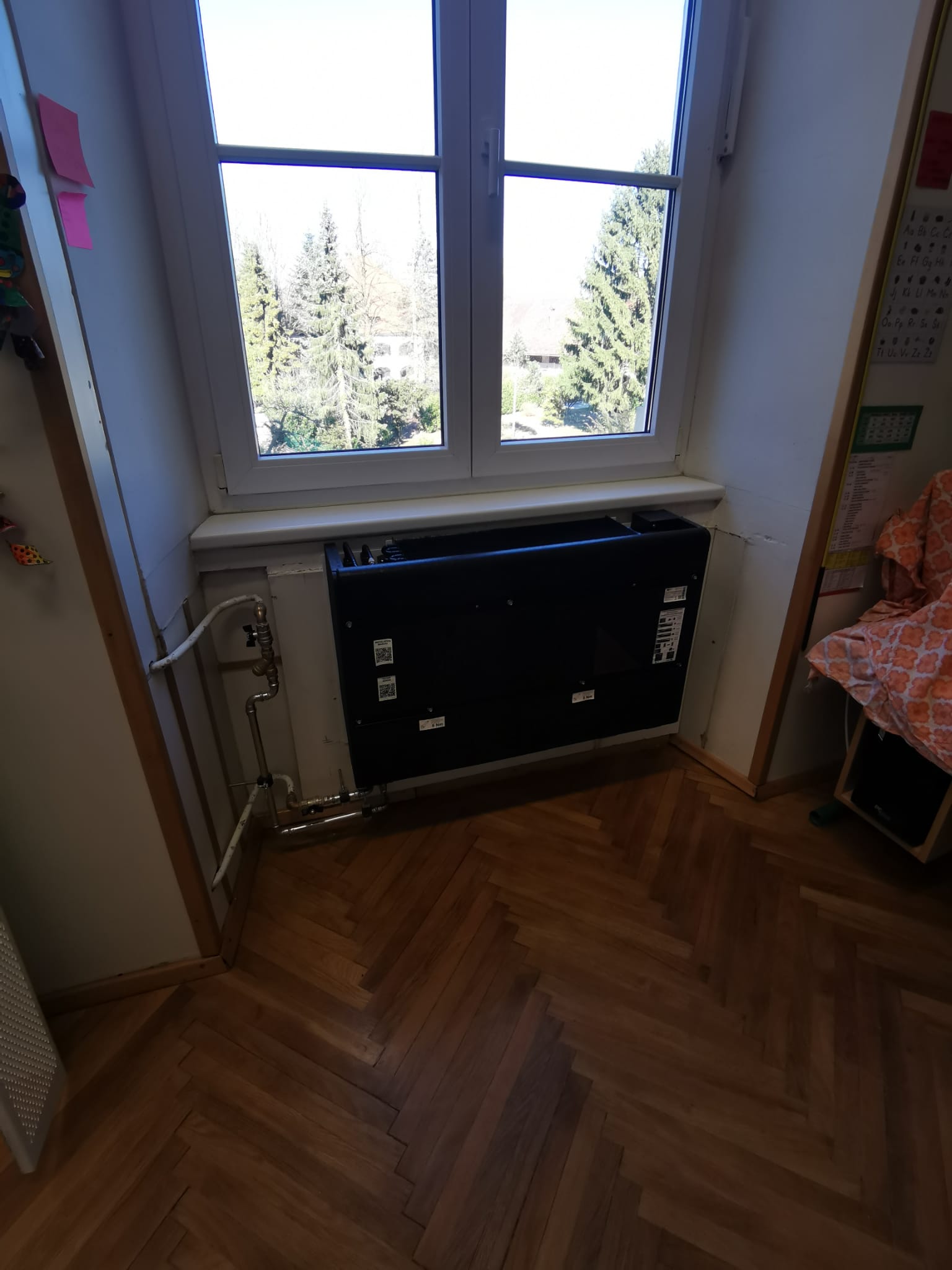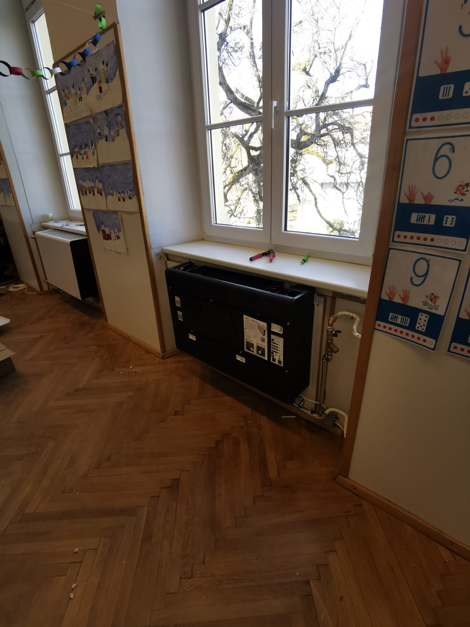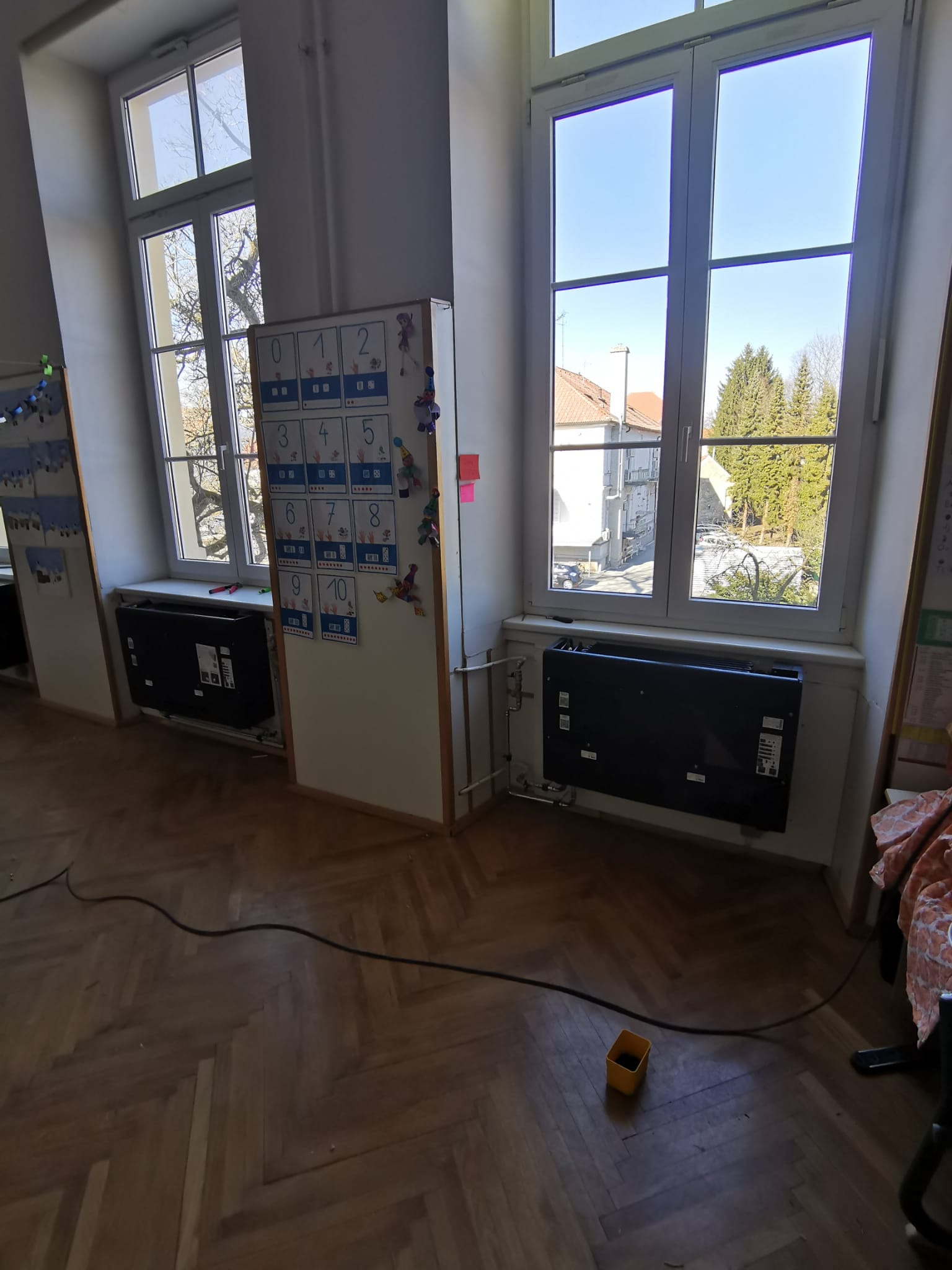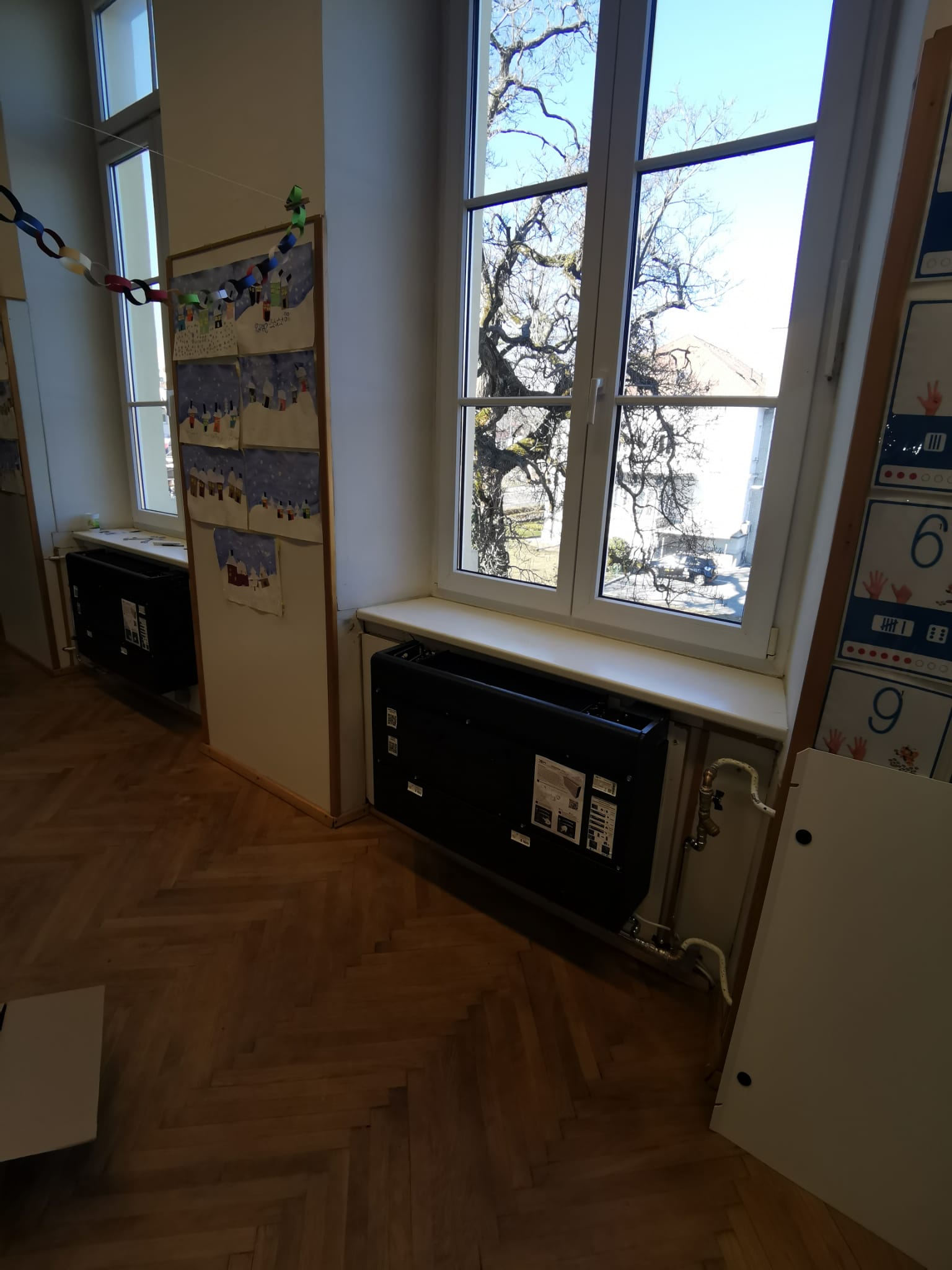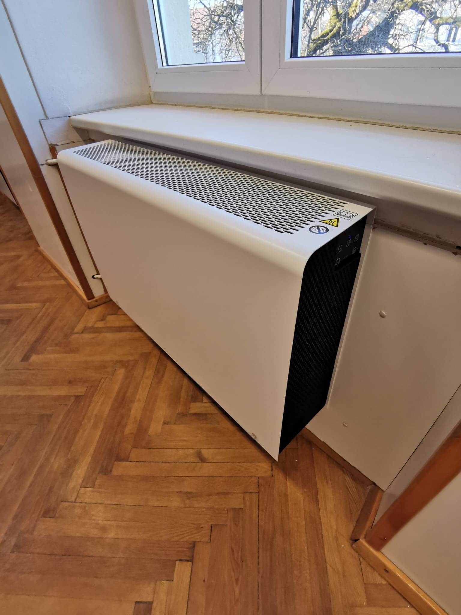-Se integreaza perfect in locul radiatoarelor si nu ocupa alte volume utile din clasa. Nu coboara plafonul si nu reduce vizibilitatea la tabla.