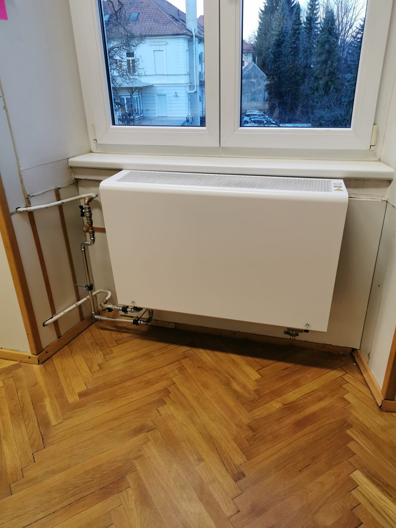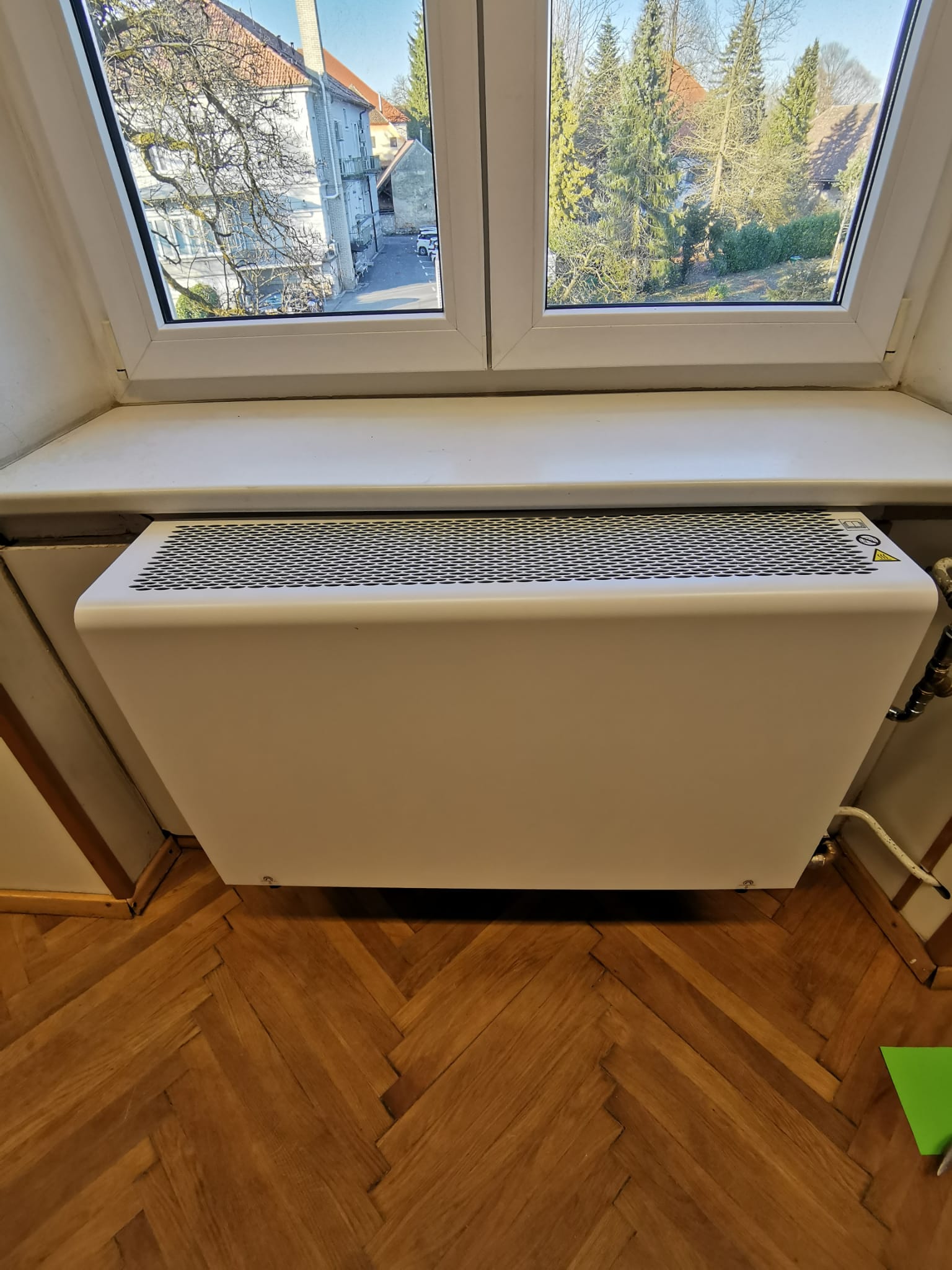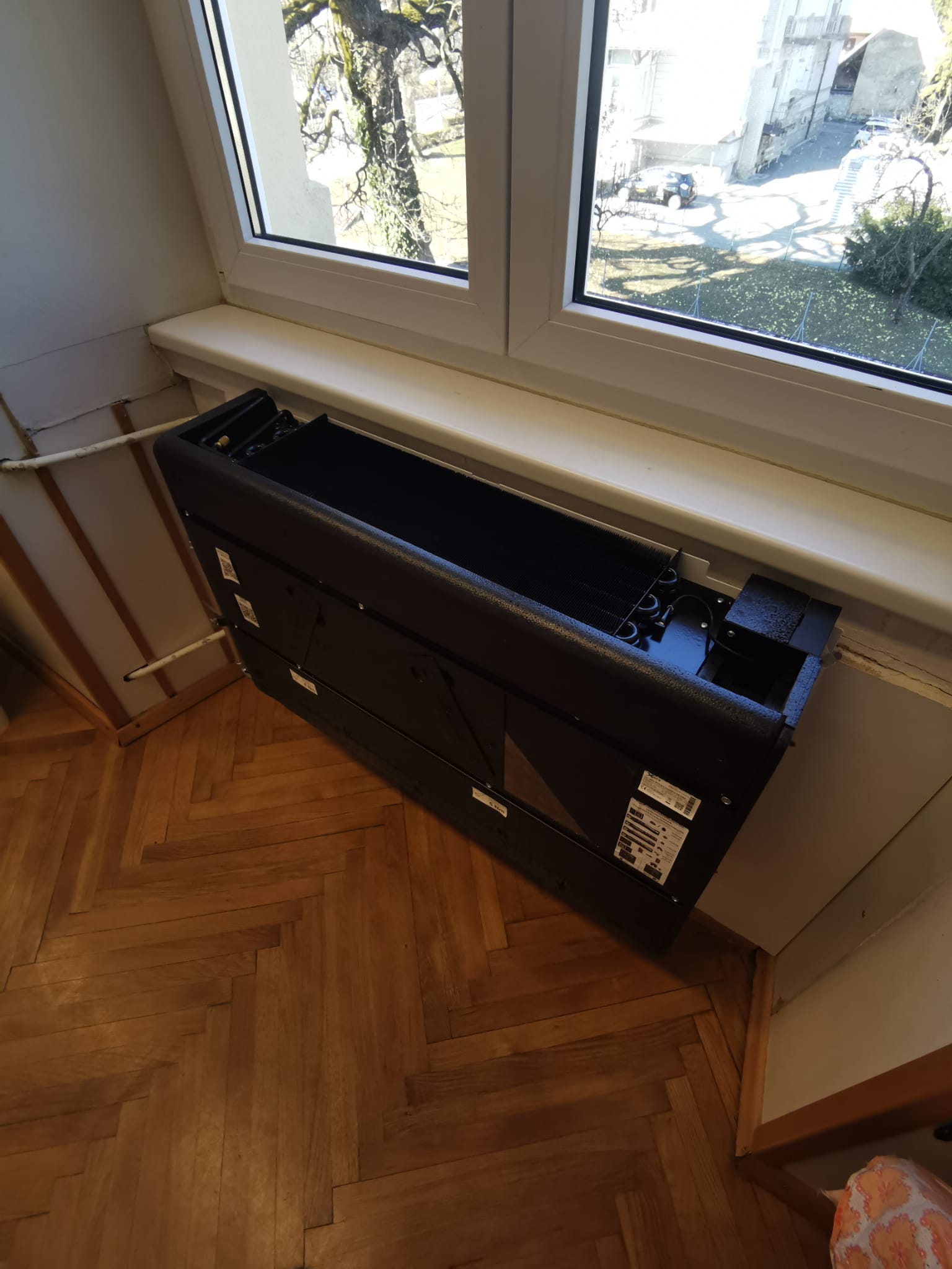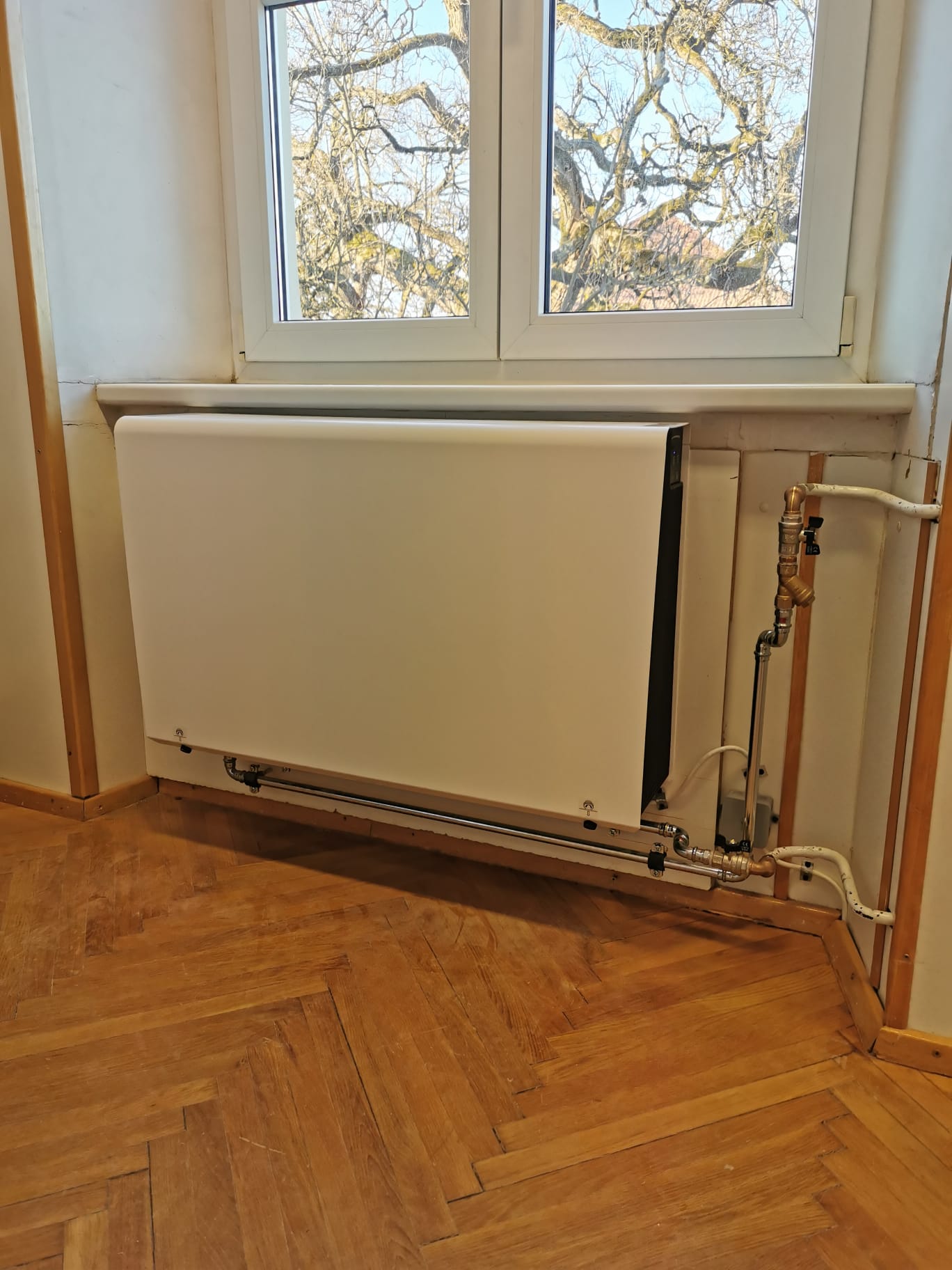 -Se integreaza perfect in locul radiatoarelor si nu ocupa alte volume utile din clasa. Nu coboara plafonul si nu reduce vizibilitatea la tabla.