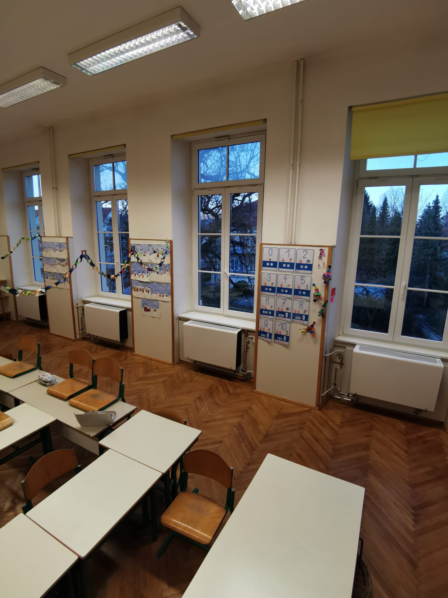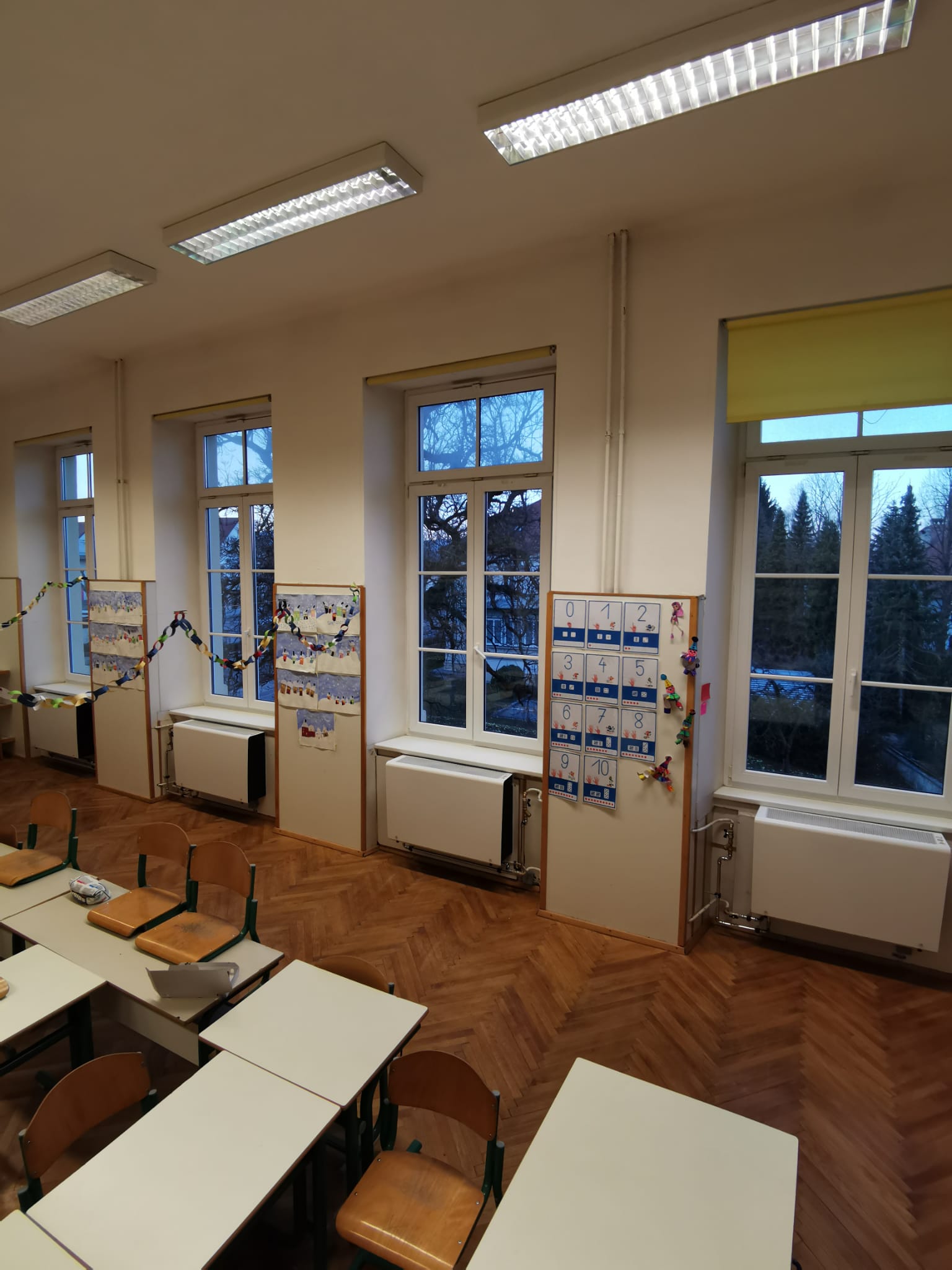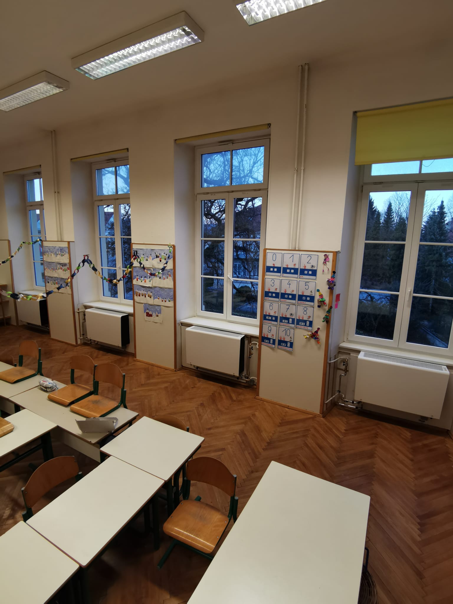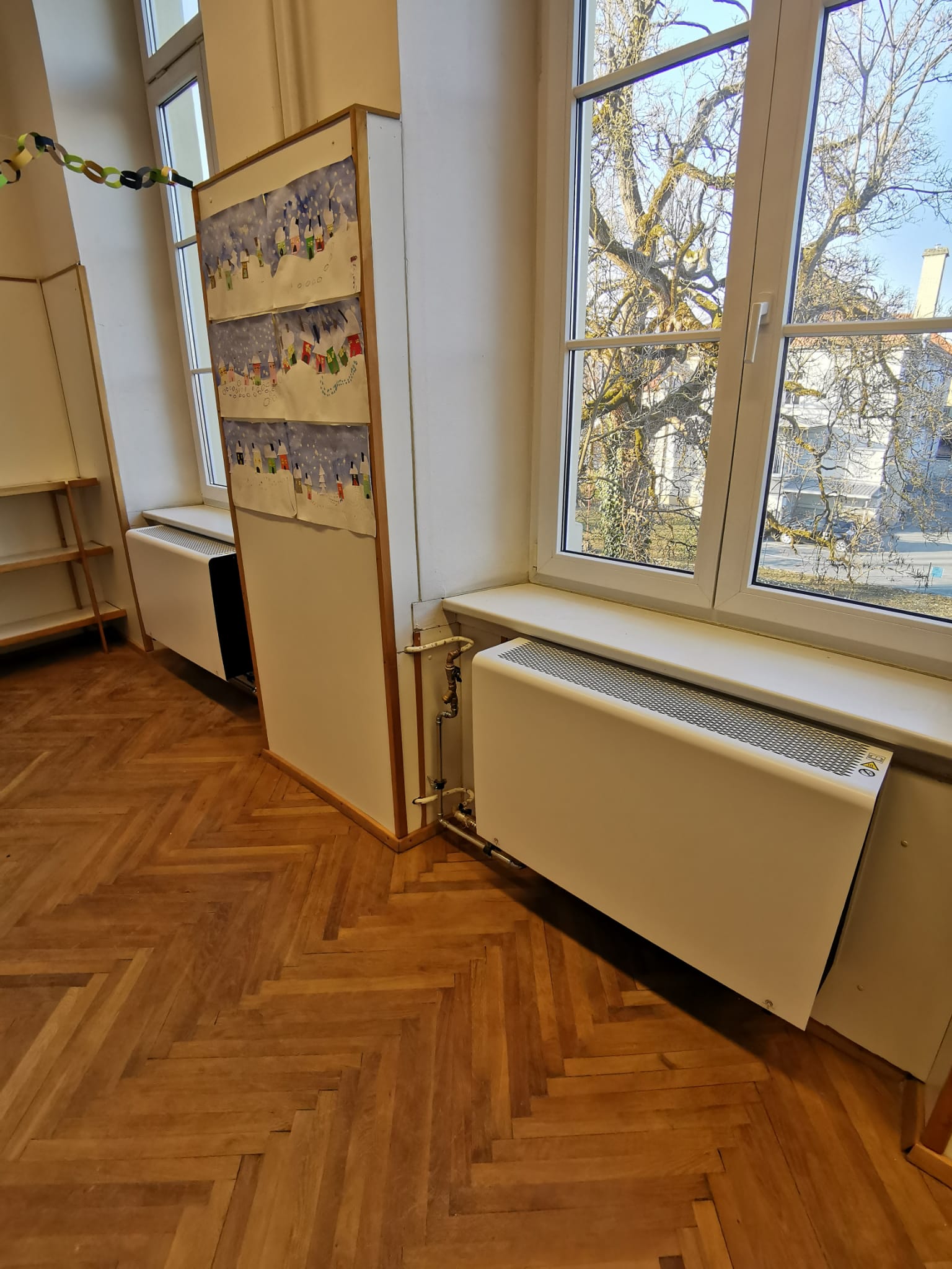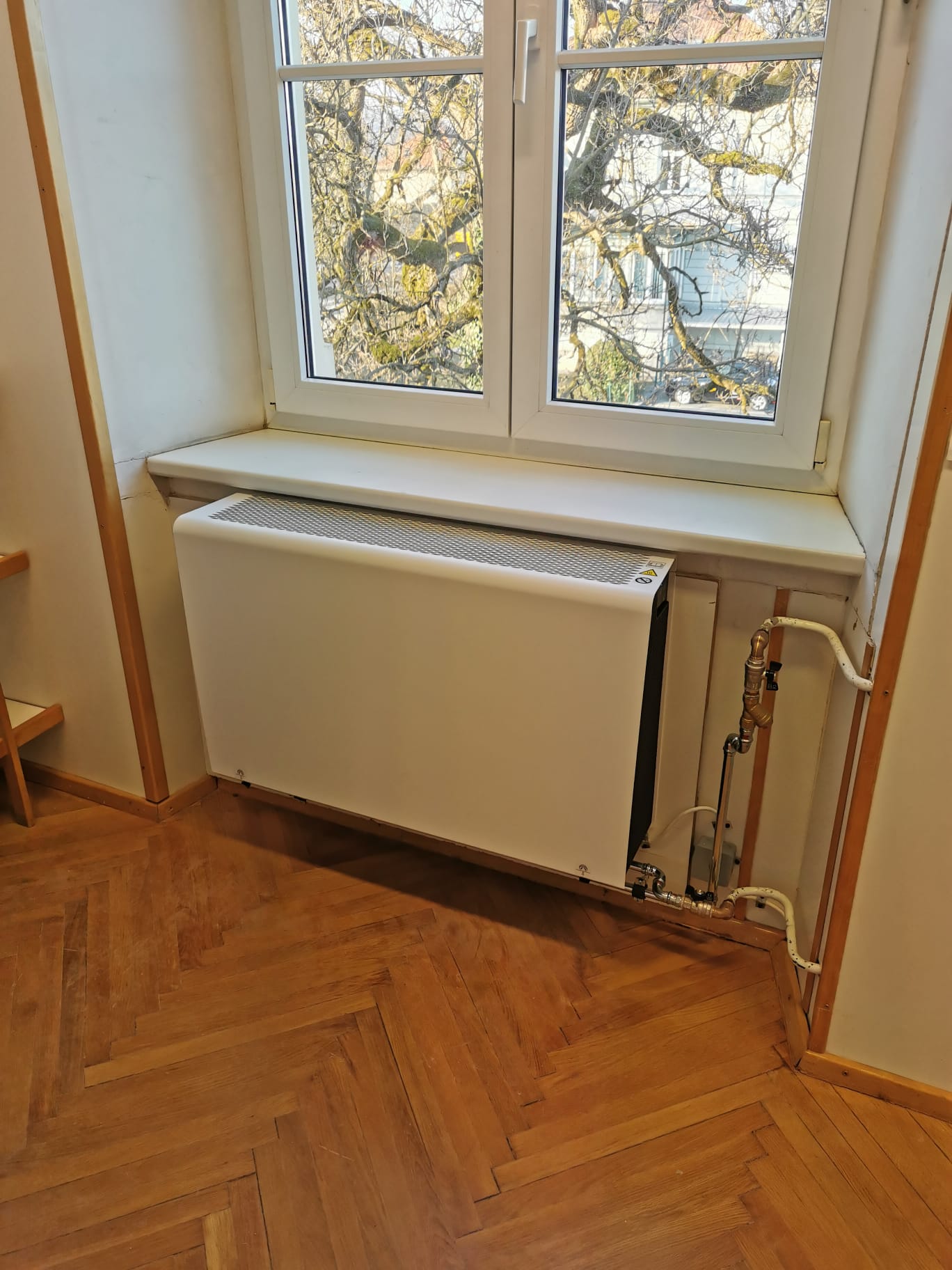 -Se integreaza perfect in locul radiatoarelor si nu ocupa alte volume utile din clasa. Nu coboara plafonul si nu reduce vizibilitatea la tabla.