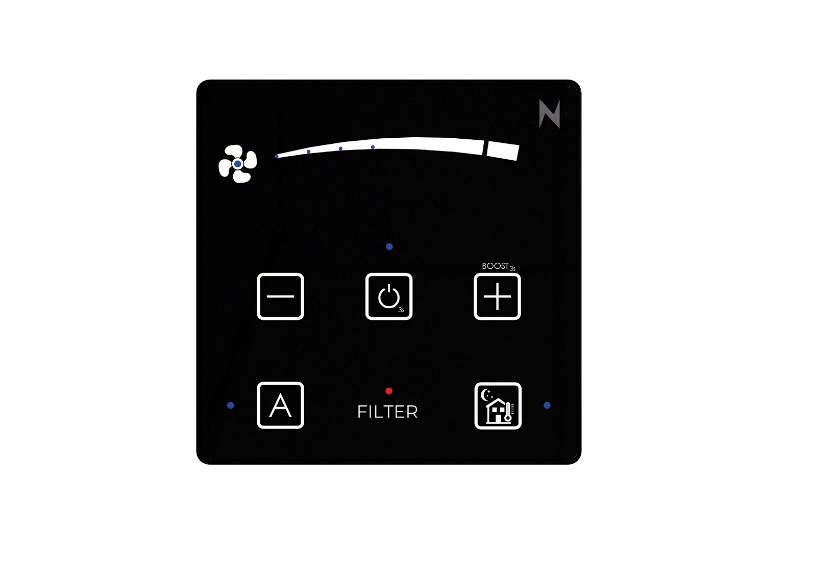 Unitatea este dotata cu mod boost, pentru o intensificare a ventilarii si cu boton de resetare la schimbarea filtrelor.