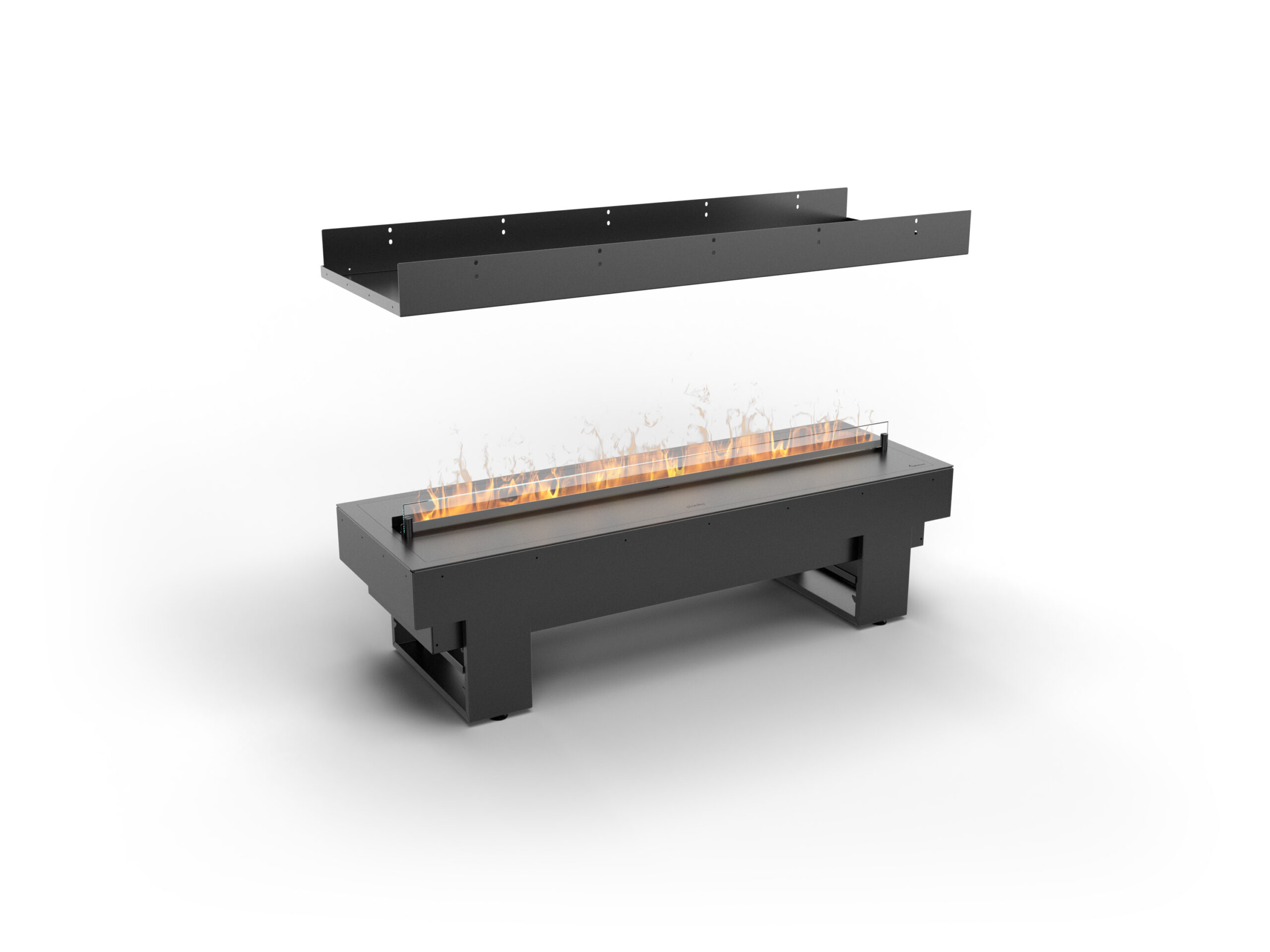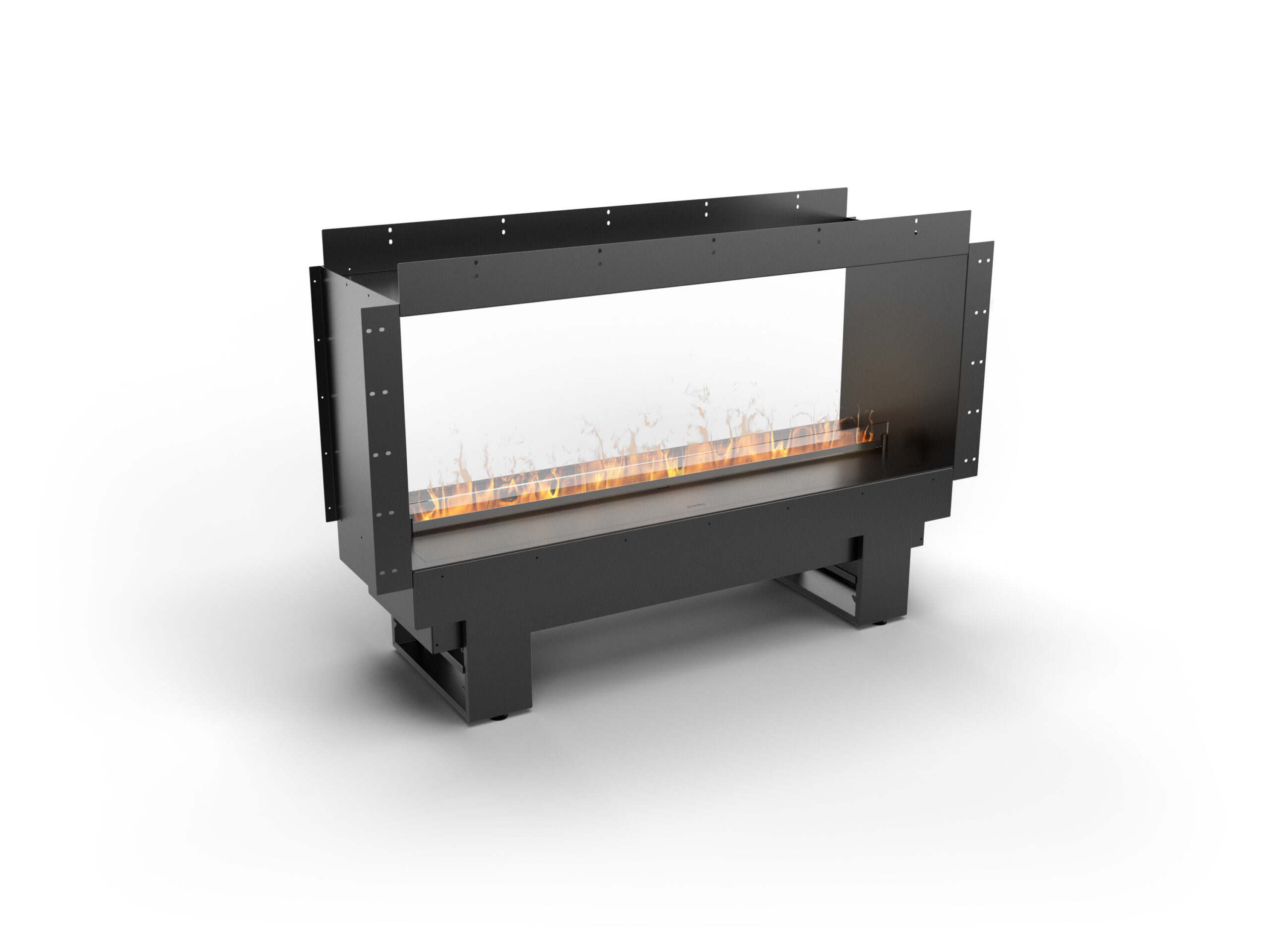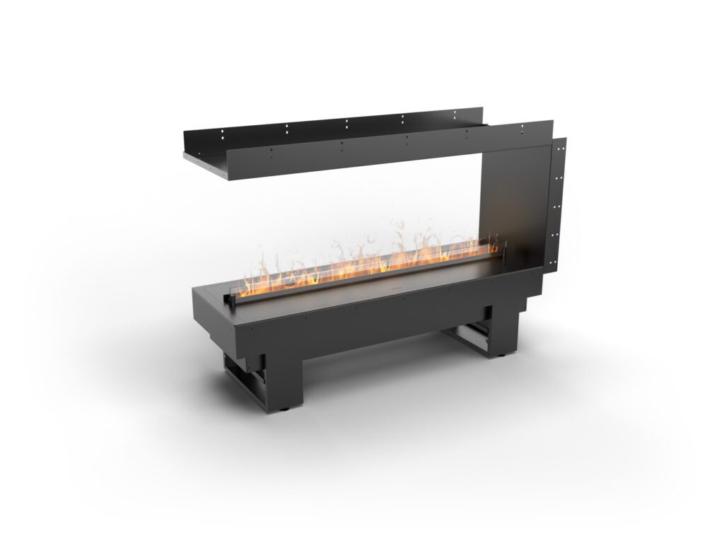 Pentru entuziaștii de design modern, șemineul Cool Flame prezintă opțiunea de vedere prin șemineu, oferind trei aranjamente unice. Creați un efect de tunel, folosiți-l ca separator de cameră sau plasați-l ca o insulă în centrul camerei. Carcasa cu vedere prin șemineu vă oferă libertatea de a modela spațiul conform viziunii dvs., conferind un caracter modern și elegant interiorului.