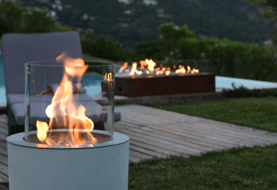 Acest șemineu de exterior din beton funcționează cu combustibil verde durabil, care este obținut din culturi precum trestia de zahăr sau porumb. Oferă o formă curată de căldură complet lipsită de fum și poluanți periculoși.