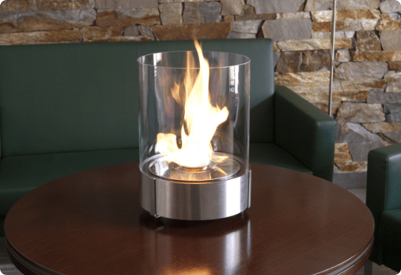 Nu este necesară nicio conexiune rigidă cu acest șemineu din oțel inoxidabil. După despachetare nu trebuie decât să umpleți arzătorul cu combustibilul bioetanol, să puneți pe el cilindrul de sticlă și să îl aprindeți pentru a vă bucura de flăcări aurii.